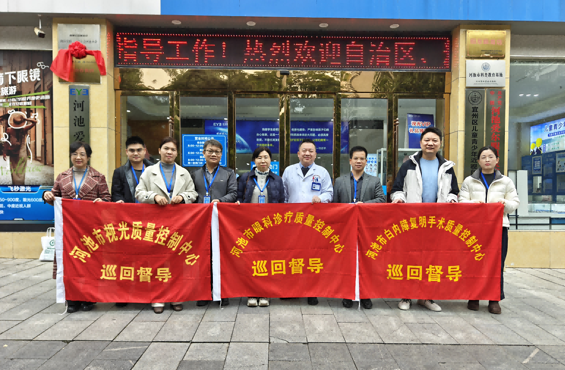为持续提升河池市眼科专业医疗质量与安全管理水平,规范诊疗服务行为,2025年12月16日上午,由河池市眼科诊疗质量控制中心、河池市白内障复明手术质量控制中心、河池市视光质量控制中心组成的第一督导专家组,在组长彭胤君主任的带领下,莅临河池爱尔眼科医院,开展了为期一小时的现场督导与调研工作。我院院长刘建平、苏伟副院长及相关科室负责人陪同检查,并就医院眼科质量管理工作进行了专题汇报。